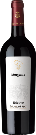 Le Mouton Cadet Reserve Medoc Margaux est plein, riche et complexe. En raison du vieillissement en fut de chene, de puissantes notes epicees sont perceptibles. Les tannins eleves donnent a ce vin une bonne structure. En outre, on observe des cerises mures, des cassis, des prunes douces et une touche legerement epicee. En raison de leurs tanins, ces vins se marient bien avec des plats tout aussi robustes comme le gibier et d'autres plats de viande consistants ou des fromages forts.