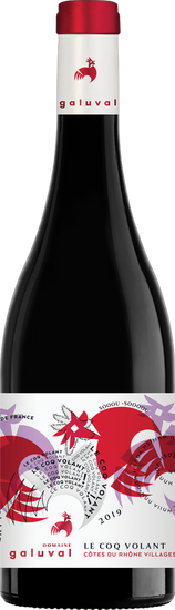 L'embleme du domaine de Galuval, le coq, virevolte au rythme des rafales de vent. Le Coq volant Rouge presente le duo mythique Syrah-Grenache sublime par la fraicheur du Mistral. Au nez, il devoile des aromes de violette et de fruits rouges souligne par l'elegance du bois. En bouche, l'ensemble est harmonieux et frais, avec une belle longueur soutenue par des saveurs de fruits noirs, d'epices et des tanins soyeux.