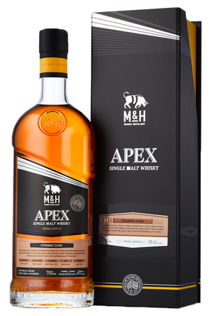 Cognac Cask Small Batch est un whisky unique qui offre des saveurs merveilleuses, derivees d'etonnants futs de chene limousine francais de 400 litres d'une maison de cognac familiale, auparavant utilises pour affiner un cognac casher de qualite superieure. Le M&H Apex est l'aboutissement d'annees de travail et de recherche qui illustrent leur esprit d'innovation et de creativite. Pousse par l'audace et l'aspiration a atteindre de nouveaux sommets, M&H a compose son apogee - une opportunite exclusive d'editions limitees.