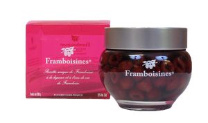 Framboisines, 100% natuurlijk, zonder kleurstoffen of bewaarmiddelen, zijn heerlijke kleine frambozen gemacereerd in likeur en frambozenbrandewijn.