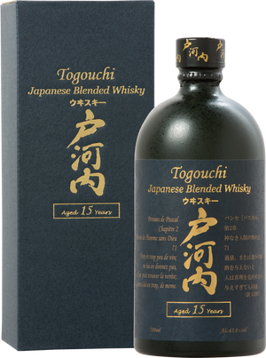 "Chugoku Jozo is een Japanse brouwerij niet ver van Hiroshima. Sinds 1918 maakt hij likeuren, sake en shochu, de traditionele Japanse brandewijn. Al decennia lang verfijnt Chugoku Jozo een bekwaam talent in de uitwerking van de fijnste sterke dranken. Het was pas in 1990 dat Chugoku Jozo besloot om het whisky-avontuur aan te gaan en het Togouchi-gamma te creëren. De meester-mixer gaat over tot een uiterst zorgvuldige selectie van destillaten (mout en graan) die naar Japan gaan om te beginnen met de rijping, voordat ze elegant worden gemengd, à la japonaise. Een assortiment dat finesse en precisie belichaamt en kostbare goederen van de aarde eert: gerst en water.
