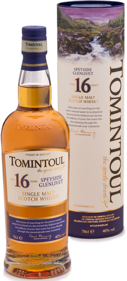 Multi-award winnende Tomintoul Speyside Glenlivet Single Malt Scotch Whisky Aged 16 Years is liefdevol vervaardigd, uit een selectie van de beste bourbonvaten, elk met een leeftijd van ten minste zestien jaar.